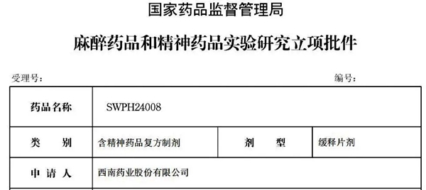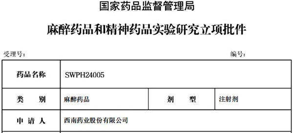 麻精药品SWPH24005和SWPH24008获得国家麻精药品立项批件