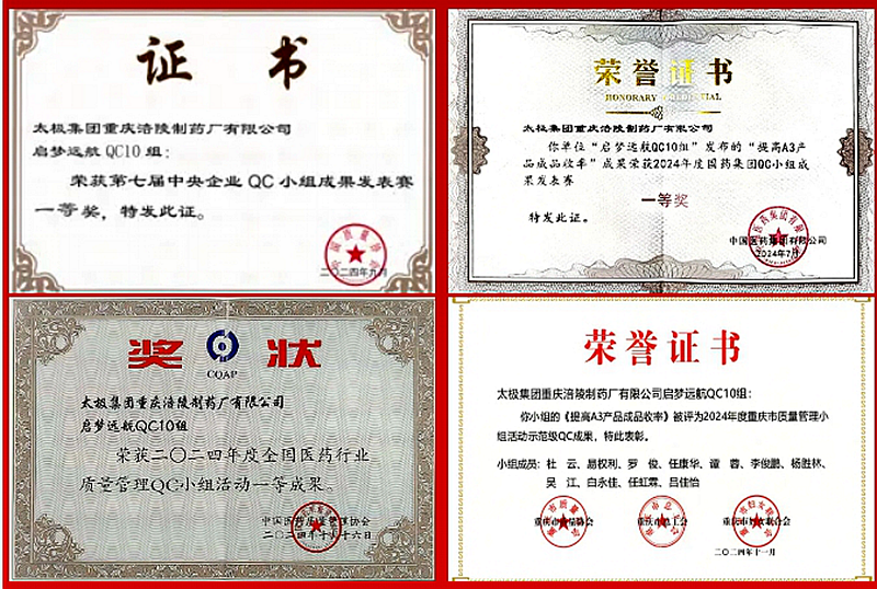 全国一等成果奖!国药太极QC项目实现国内QC奖项“大满贯”