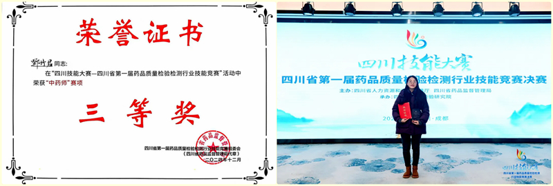 四川天诚制药肖梦云,荣获“中药师”赛项二等奖