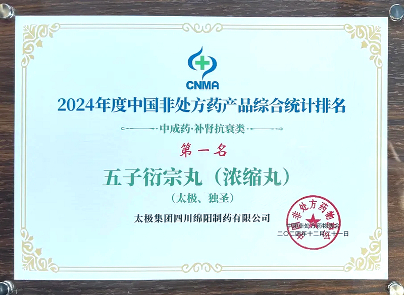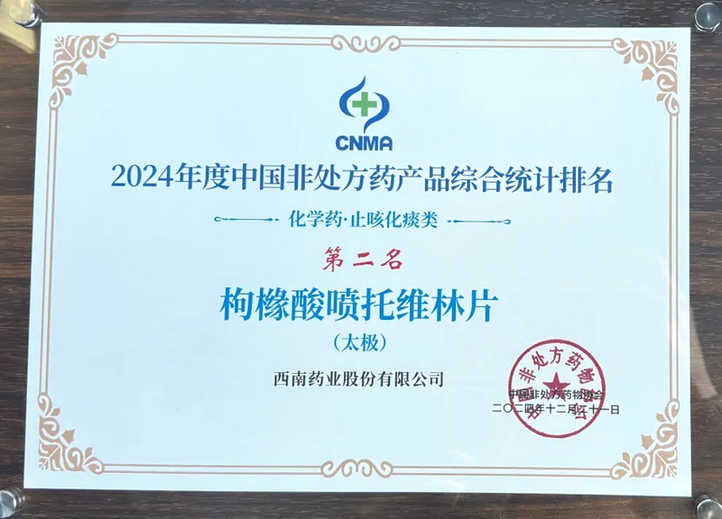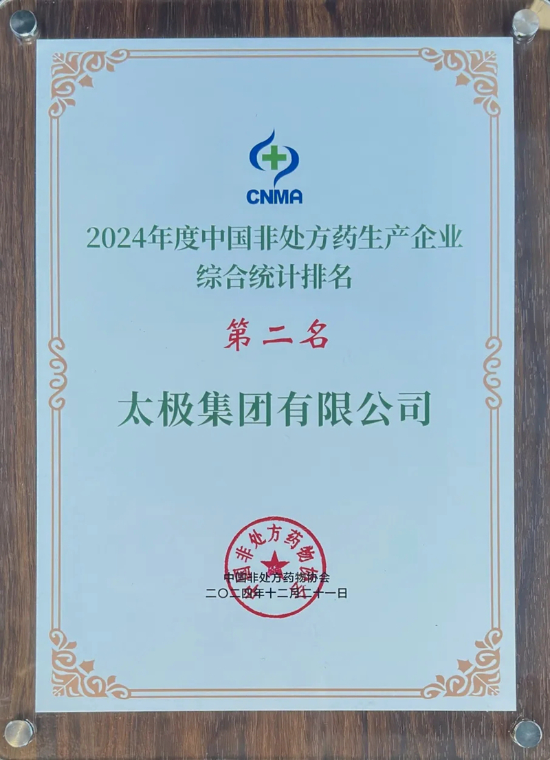 荣获2024年度中国非处方药生产企业综合统计排名第2名