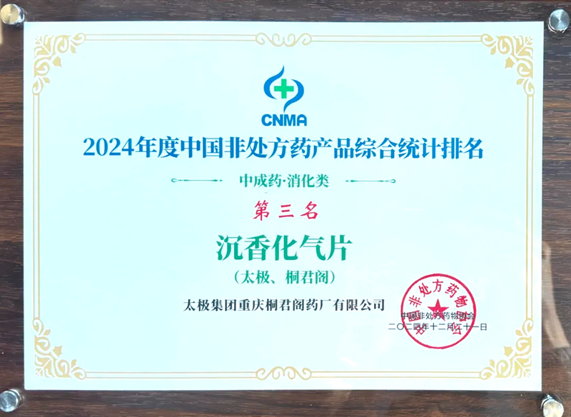 荣获中成药消化类第3名
