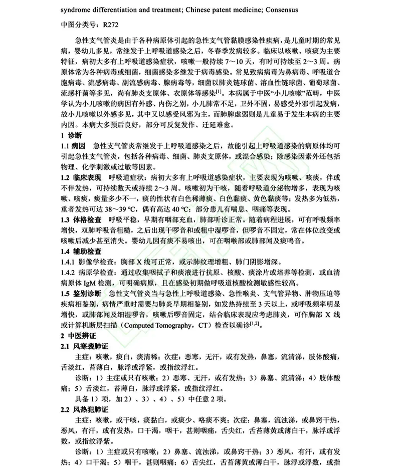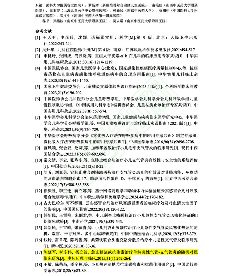 急支糖浆入选《儿童急性支气管炎中西医结合诊治专家共识》