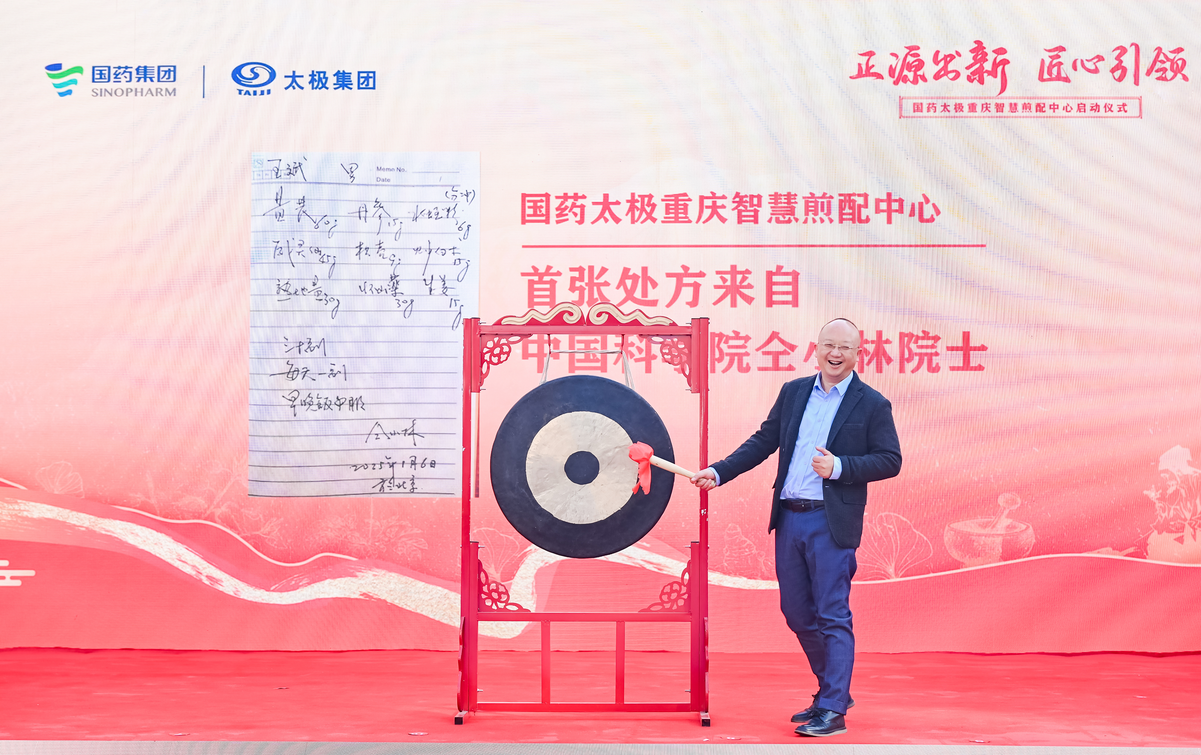 在锣鼓声中,来自中国科学院仝小林院士的第一张处方正式开启了重庆智慧煎配中心高效、精准的煎配服务。