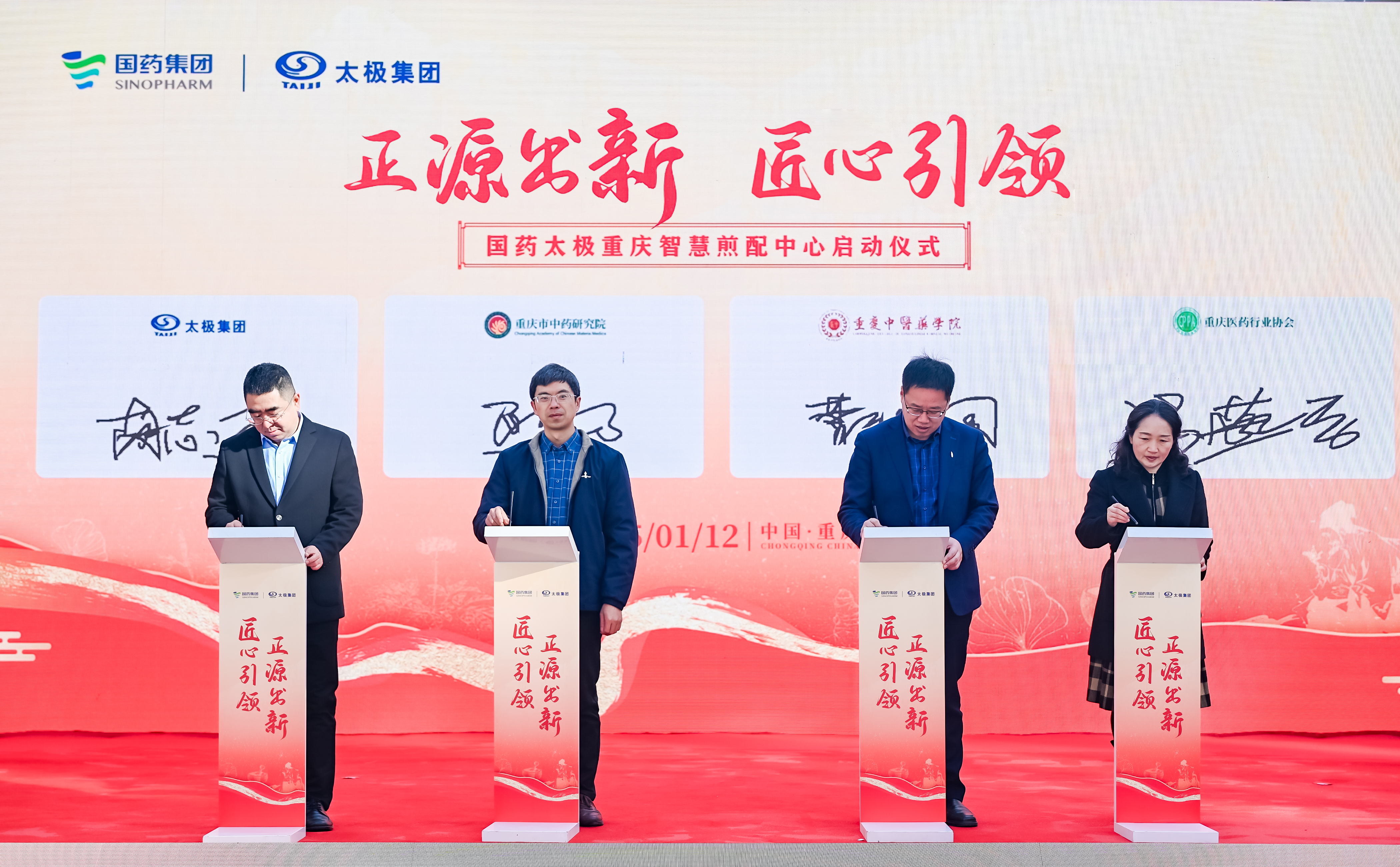 现场,国药太极与重庆市中药研究院、重庆中医药学院、重庆医药行业协会就智慧医疗、大数据应用与健康管理等前沿领域合作签署了战略合作协议,并为合作项目揭牌。