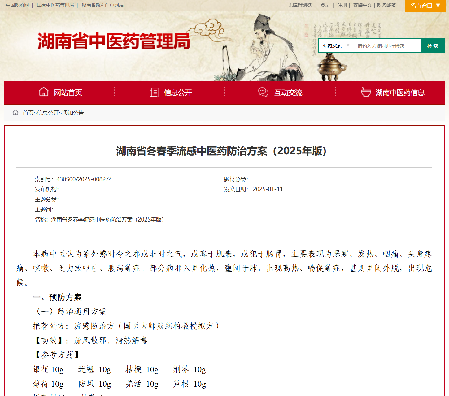 喜报 | 藿香正气口服液入选湖南省冬春季流感中医药防治方案(2025年版)