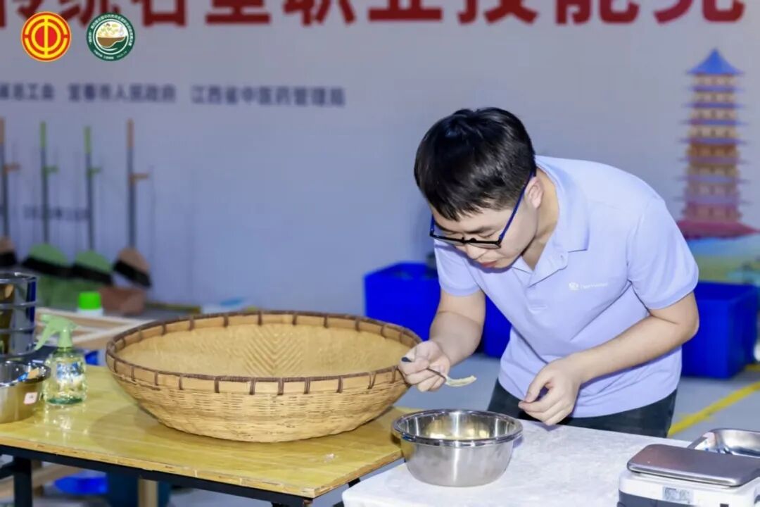 比赛亮点纷呈,绵阳制药厂何苗在水泛丸制作中勇夺满分,展现完美技艺;桐君阁药厂张琦琦在蜜丸制作中获得95.5分的全场最高分,彰显匠心水准。这场涵盖理论知识和多项传统技艺的巅峰对决,不仅考验选手的专业素养,更展现了新时代中药人对传统工艺的传承与创新。