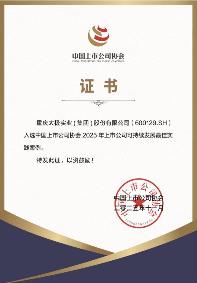 近日,中国上市公司协会公布了2025年度上市公司多项实践案例评选结果。国药太极凭借在可持续发展方面的卓越表现以及良好的公司治理与创新实践,成功斩获两项重磅荣誉——“2025年上市公司可持续发展最佳实践案例”及“2025年上市公司董事会优秀实践案例”,这是国药太极连续两年得此类殊荣,也是监管机构、行业协会等对国药太极的信任与肯定。