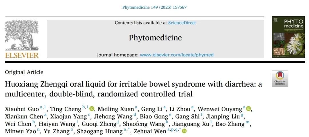 近日,太极藿香正气口服液治疗腹泻型肠易激综合征(IBS-D)的多中心、双盲、随机对照临床试验取得重大成果,相关研究论文已正式发表于国际权威期刊《Phytomedicine》(IF: 8.3)。这是继该产品在特应性皮炎治疗研究取得进展后,在拓展适应症领域取得的又一重大突破。