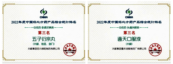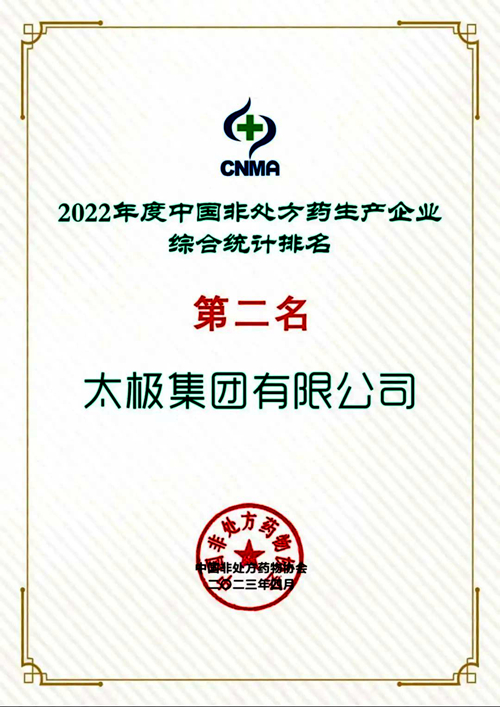 太极集团荣获“2022年度中国非处方药生产企业综合统计排名”第二名,共计20家企业上榜。