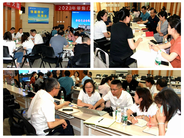 会上商业营运管理中心作了公司与上市头部医药连锁对标分析、公司内部商业零售单位的对标分析和加盟药房发展和管理的探讨;各单位作了直营零售经营分析,零售专委会作了1-5月营采工作、新零售工作和下半年工作计划。为提升零售经营能力,与会领导和各公司交叉分组开展头脑风暴,讨论提升直营零售门店效益的有效办法。重庆平台公司副总经理聂志阳对重庆片区门店存在的问题进行了分析并提出提升措施。重庆平台公司总经理钟浩和四川平台公司总经理何雄从人员配置和商品管理、提高员工的专业知识和服务力、加强门店管理、降低费用率等方面提出意见。商业营运管理中心常务副总经理黄星明作了战略分析,明确了“1个商业中心+2个平台公司+3个专委会”的组织定位,提出了平台内业态专线和组织机构的整合及流程优化的目标。