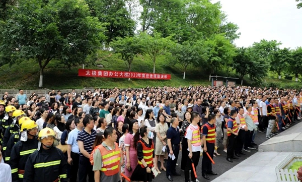 为确保应急疏散演练的顺利进行,公司成立了演练指挥部,由太极集团党委书记、董事长李阳春担任总指挥,下设灭火行动组、疏散引导组、现场警戒组、安全救护组、后勤保障组、通信联络组等应急工作组。