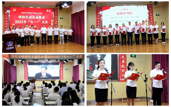 绵阳天诚药业集团党委召开2023年“七一”大会,热烈庆祝中国共产党成立102周年。党委书记郭宏讲授《深刻领悟“三个务必”的丰富内涵和时代意义》专题党课,号召全体党员干部职工要“不忘初心、牢记使命”,做表率勇担当,勤作为创佳绩,将爱党爱国热情转化为爱岗敬业奉献的强大精神动力,以优异的成绩向党的生日献礼。
