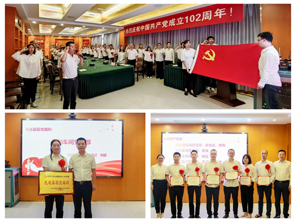 涪陵制药厂召开纪念建党102周年大会,让党旗在基层一线高高飘扬。会上表彰“两优一先”,观看警示教育片,纪委书记进行集体廉洁谈话,进一步坚定全体党员干部职工理想信念,激发砥砺奋进新征程强大动能。