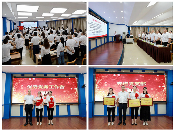 新党员面对党旗庄严宣誓,与会党员一起重温入党誓词,表彰“两优一先”,进一步凝聚思想共识、汇聚奋进力量。
