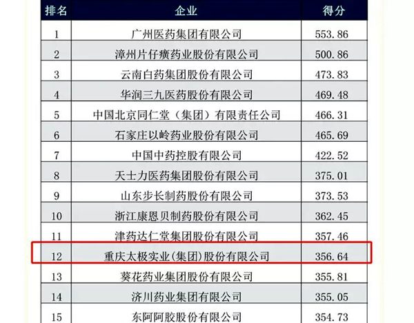 国药太极入榜“2023年中成药企业综合竞争力指数top50”