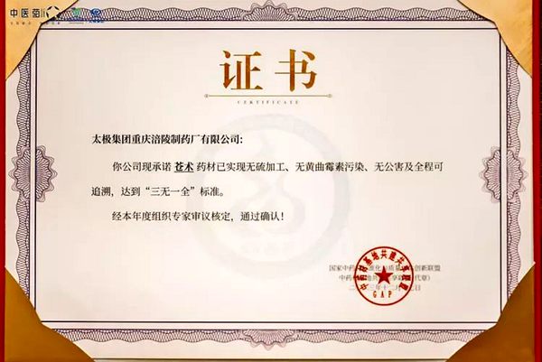 国药太极苍术品种荣获“2023年度中药材‘三无一全’品牌品种”