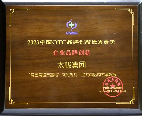 太极集团《“两园两馆三基地”文化先行,助力中医药传承发展》获“2023中国OTC品牌创新优秀案例”。
