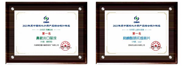 鼻窦炎口服液荣获“2023年度中国非处方药产品综合统计排名(中成药·耳鼻科类)”第一名,枸橼酸喷托维林片荣获“2023年度中国非处方药产品综合统计排名(化学药·止咳化痰类)”第一名。