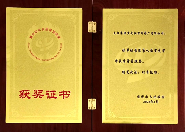 喜报 | 太极集团重庆桐君阁药厂荣获第八届重庆市市长质量管理奖