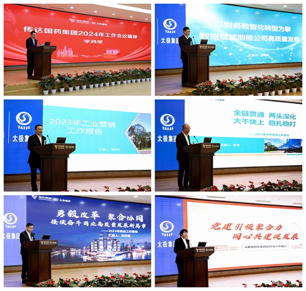 太极股份党委副书记李鸿坚传达了国药集团年度工作会议的相关文件精神,财务、工业营销、中药资源、医药商业、党建等相关板块分管领导分别作工作报告。