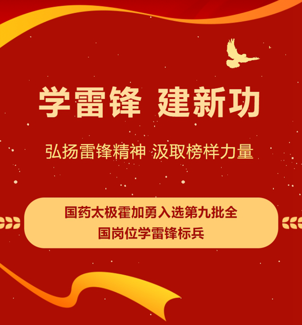 喜报 | 国药太极霍加勇入选第九批全国岗位学雷锋标兵!