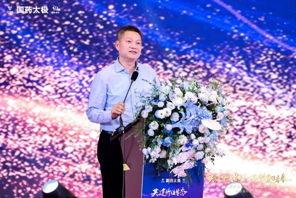 江苏九州通医药有限公司总经理徐伟民回顾了与国药太极的三年合作,表达了坚决捍卫太极藿香正气液价值生态,再创辉煌业绩的决心和信心。