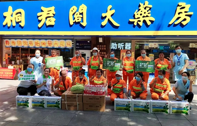 2024年夏季,药店旺季未如约而至,曾义敏锐感到需要寻找新的突破口,迅速提出了以“送健康+行走销售”模式为突破点,开始带领团队联系附近各大企业开展“党建共联”、“关爱职工健康”等活动。先后联合企业开展“夏季送清凉”活动、走进社区举行“关爱老人”活动、组织员工利用下班时间使用微信“扫一扫”寻找周边微小型企业上门拜访活动、走进社区开展居民畅饮“太极藿香小可乐”或利用位置便利向高温工作者发放解暑药品及宣传防暑知识、设立“纳凉专区”为市民提供乘凉去处……整个夏季,从一大早忙到华灯初上已是家常便饭。龙康药店团队通过“送健康+行走销售”,为市民带去了健康知识,也促进了药店经营,龙康药店以优秀的同比增长率在九龙坡区又一次成为名副其实的区域销售定盘星。