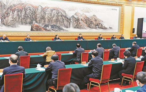中共中央政治局常委、全国政协主席汪洋主持座谈会。