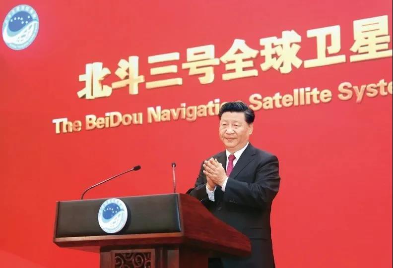 ▲2020年7月31日上午,北斗三号全球卫星导航系统建成暨开通仪式在北京举行。中共中央总书记、国家主席、中央军委主席习近平出席仪式,宣布北斗三号全球卫星导航系统正式开通。新华社