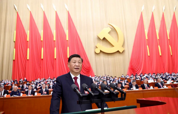 习近平代表第十九届中央委员会向大会作了题为《高举中国特色社会主义伟大旗帜 为全面建设社会主义现代化国家而团结奋斗》的报告。习近平指出,中国共产党第二十次全国代表大会,是在全党全国各族人民迈上全面建设社会主义现代化国家新征程、向第二个百年奋斗目标进军的关键时刻召开的一次十分重要的大会。大会的主题是:高举中国特色社会主义伟大旗帜,全面贯彻新时代中国特色社会主义思想,弘扬伟大建党精神,自信自强、守正创新,踔厉奋发、勇毅前行,为全面建设社会主义现代化国家、全面推进中华民族伟大复兴而团结奋斗。