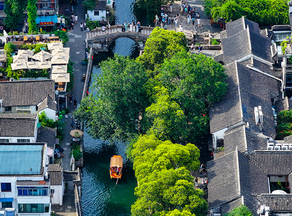 这是2023年7月3日拍摄的苏州平江历史文化街区(无人机照片)。新华社记者 李博 摄