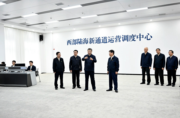22日下午,习近平首先考察了重庆国际物流枢纽园区。他来到西部陆海新通道重庆无水港运营调度中心,听取新通道建设情况汇报。习近平强调,物流是实体经济的“筋络”。建设西部陆海新通道,对于推动形成“陆海内外联动、东西双向互济”的对外开放格局具有重要意义。各有关方面要齐心协力,把这一标志性项目建设好、运营好,带动西部和内陆地区高水平对外开放。物流园区要积极运用先进技术,不断创新联运模式,提高科学管理水平,在建设现代物流体系中发挥更大作用。