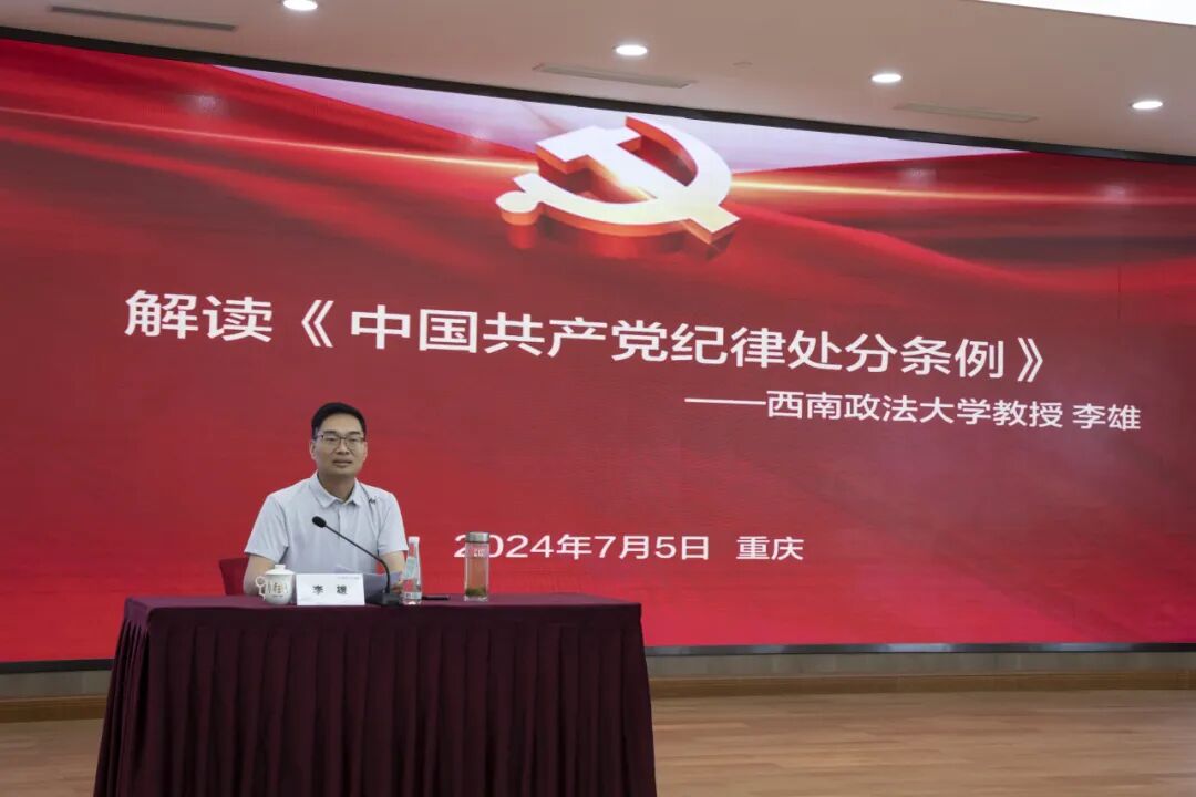 西南政法大学教授李雄深刻剖析《条例》的内涵,结合实际案例进行深入浅出的讲解,不仅从理论层面阐述了条例的重要性和必要性,也从实践层面提出了具体操作建议,为公司全体党员干部遵守党的纪律、增强自律意识提供了有力的指导。