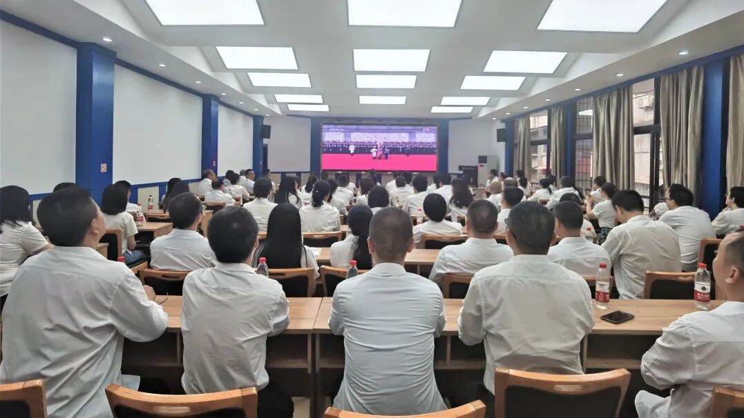 太极集团及太极实业党政班子成员、集团部门负责人在集团总部会议室集中观看大会直播。