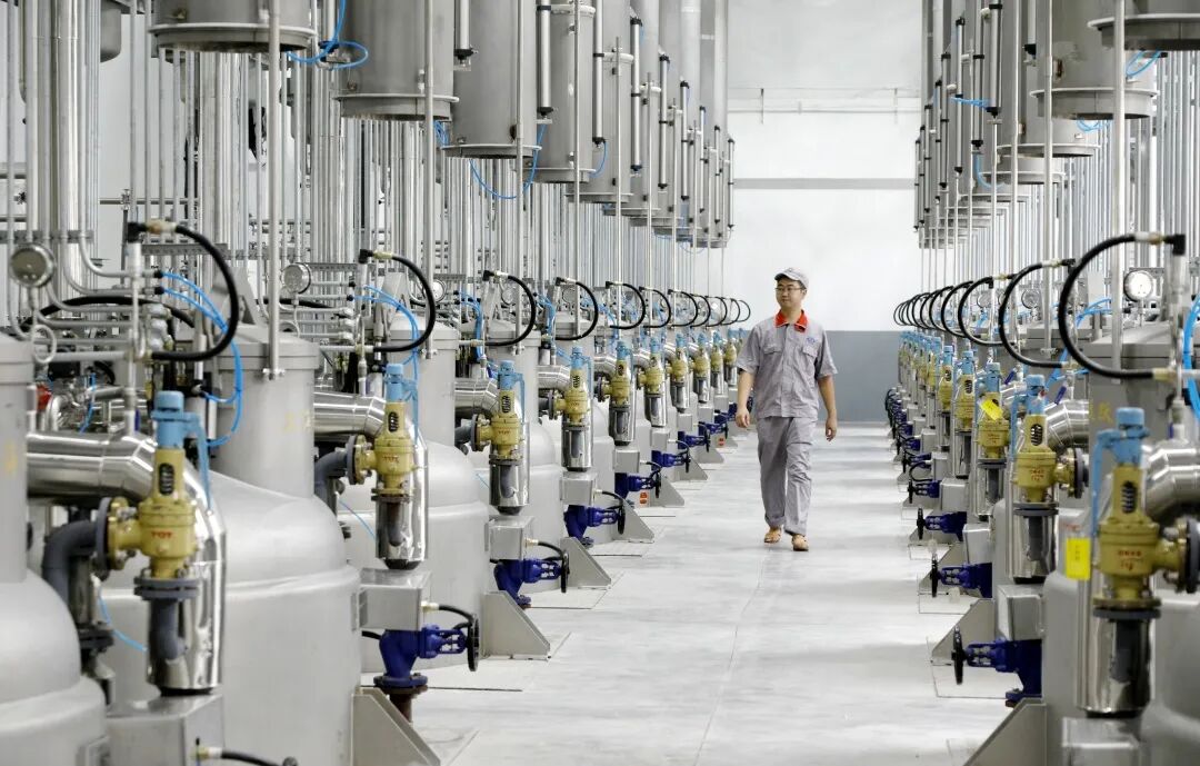太极医药城B区智能化中药提取工序副班长现场巡视藿香正气口服液生产情况。