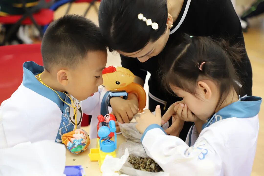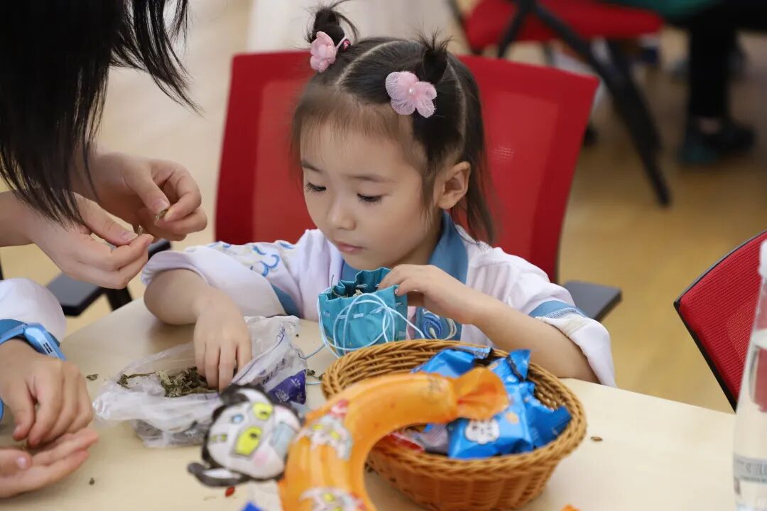 小朋友们和家长一起制作了中药香囊,现场气氛热烈、欢声笑语,大家在玩中学、学中玩,既动手又动脑,收获满满。