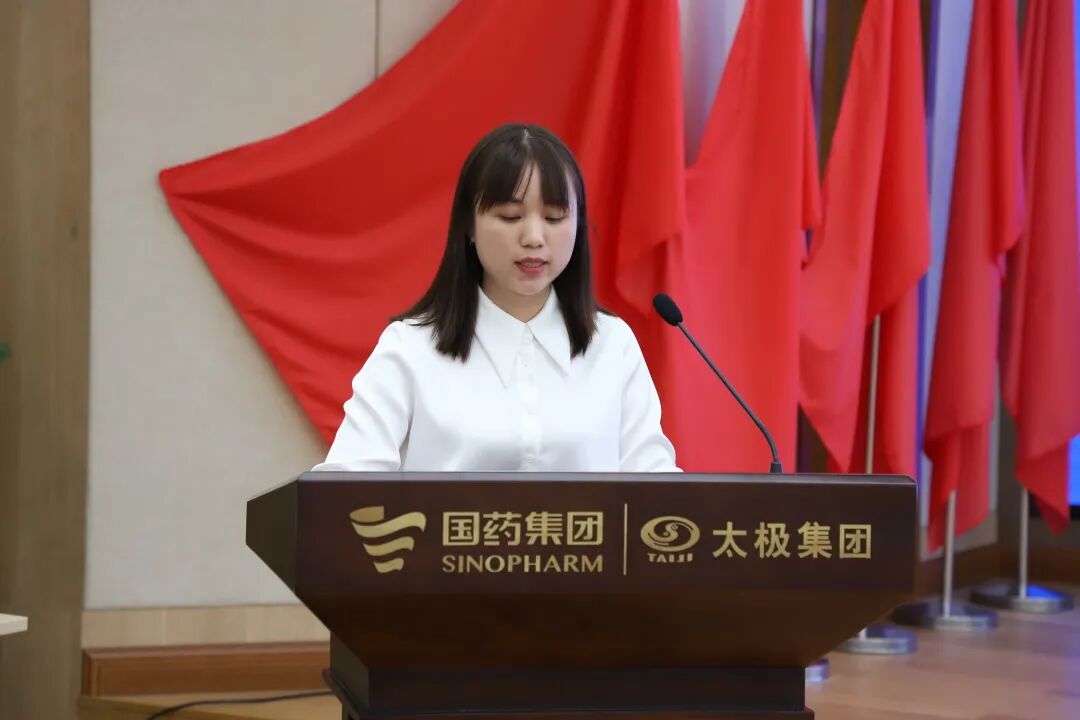 太极集团党委副书记崔海燕带领大家学习习近平总书记在庆祝中国共产主义青年团成立100周年大会上的重要讲话精神。