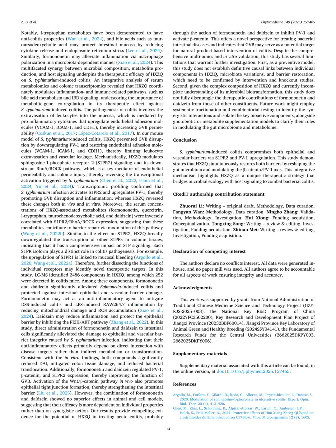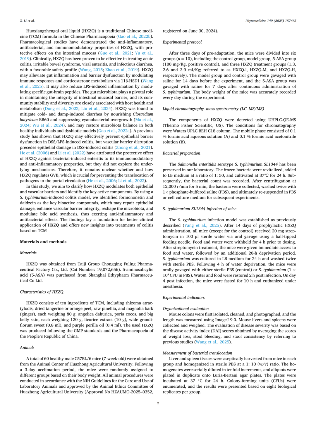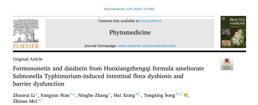 近日,太极藿香正气口服液防治鼠伤寒沙门氏菌诱导的结肠炎机制研究方面取得重要进展,相关成果发表于国际权威期刊《Phytomedicine》(IF:8.3)。