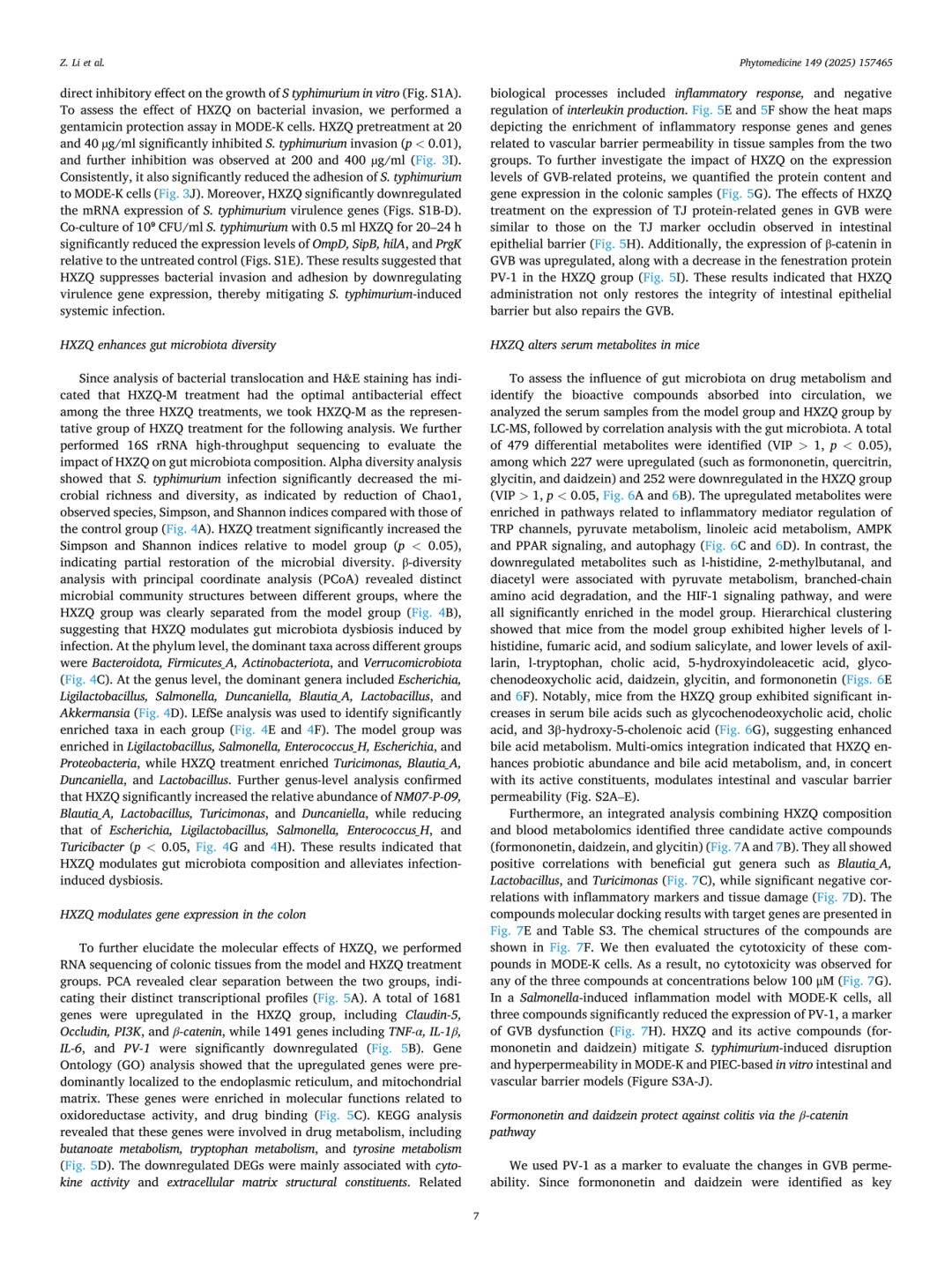该研究通过多组学整合分析及体内外实验,系统阐释了太极藿香正气口服液通过重塑肠道菌群和调节血浆膜囊泡相关蛋白(Plasmalemma Vesicle-Associated Protein, PV-1)/β-连环蛋白(β-catenin)的表达来缓解鼠伤寒沙门氏菌诱导的结肠炎。研究进一步锁定芒柄花素(Formononetin)与大豆苷元(Daidzein)为太极藿香正气口服液抗结肠炎的主要活性成分。