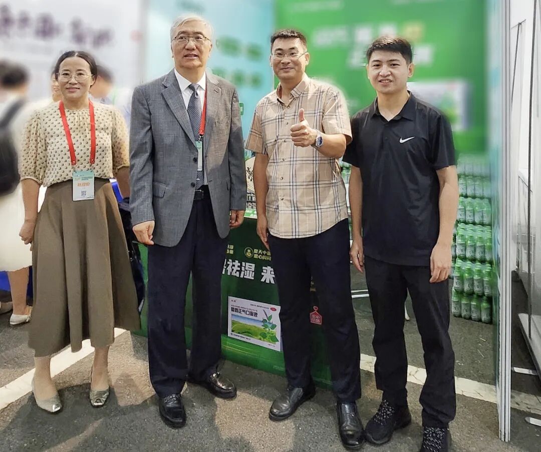 图:中华中医药学会脾胃病分会主任委员唐旭东教授、赵迎盼教授参观国药太极展位