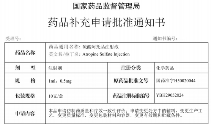 近日,经国家药品监督管理局核准,国药太极西南药业成功获得硫酸阿托品注射液一致性评价补充申请批件,同时麻精药品SWPH24005和SWPH24008也获得国家麻精药品立项批件。