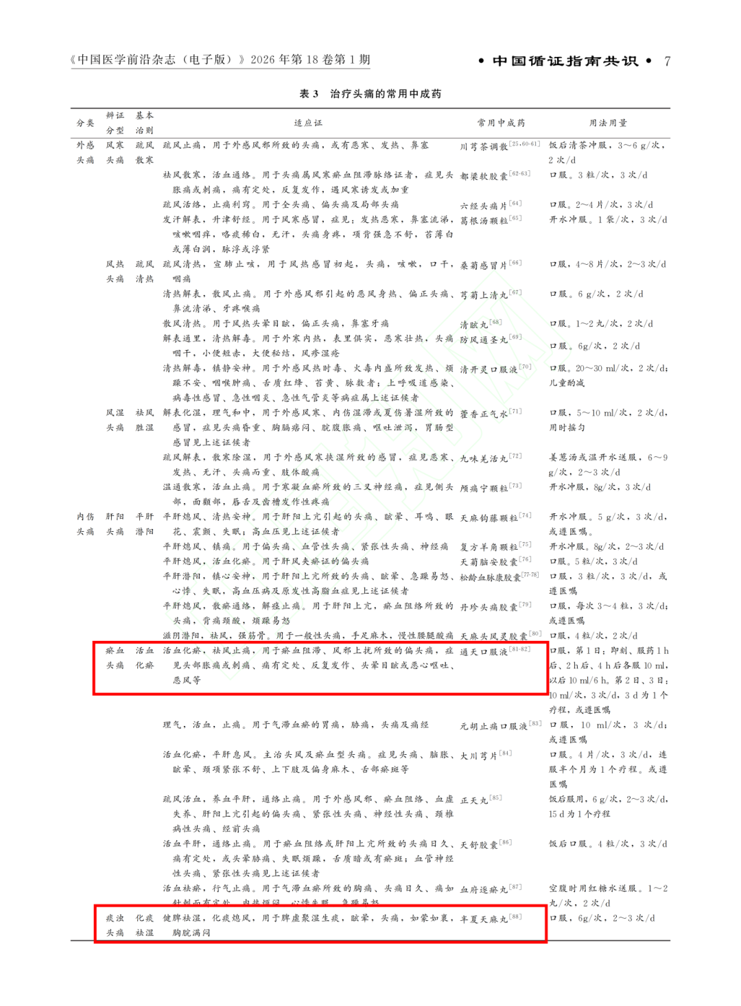本次发布的《共识》系统梳理了原发性头痛的中西医结合诊疗路径,强调“辨证论治、精准用药”的原则。《共识》在“常用中成药推荐”部分明确指出:通天口服液适用于瘀血阻滞、风邪上扰所致的偏头痛,症见头部胀痛或刺痛、痛有定处、反复发作、头晕目眩或恶心呕吐、恶风等。半夏天麻丸适用于痰浊头痛,用于脾虚聚湿生痰,眩晕,头痛,如蒙如裹,胸脘满闷。为临床诊疗提供了权威、实用的参考依据。