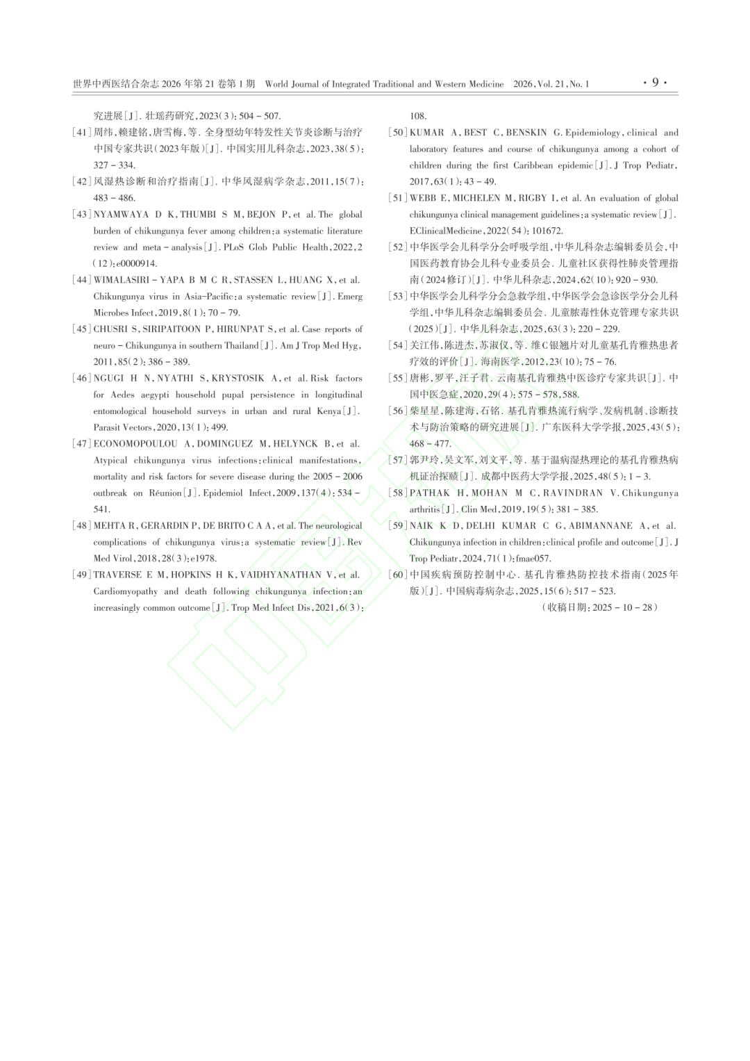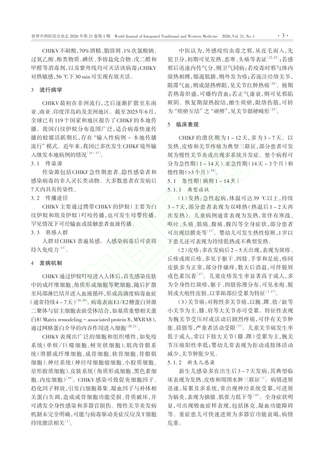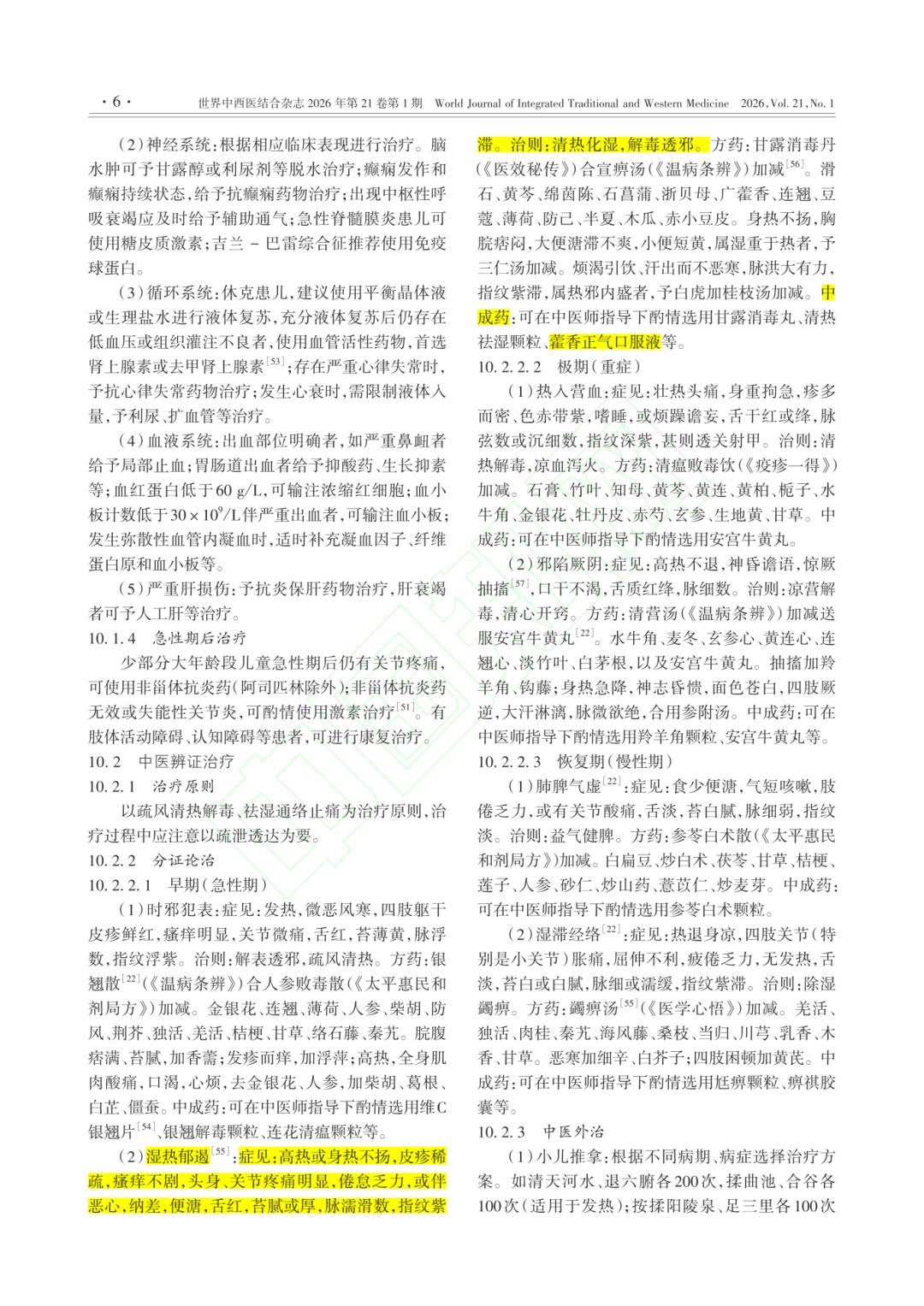 基孔肯雅热是由伊蚊叮咬传播的急性传染病,儿童为重症高风险人群,目前国内尚无特异性抗病毒药物及疫苗,治疗以对症支持为主,中医辨证治疗为有效措施之一。《共识》将基孔肯雅热归为中医“湿温”范畴,明确湿热郁遏证为早期(急性期)常见证型,症见高热或身热不扬,皮疹稀疏,瘙痒不剧,头身、关节疼痛明显,倦怠乏力,或伴恶心,纳差,便溏,舌红,苔腻或厚,脉濡滑数,指纹紫滞。治则:清热化湿、解毒透邪。中成药:可在中医师指导下酌情选用藿香正气口服液等。