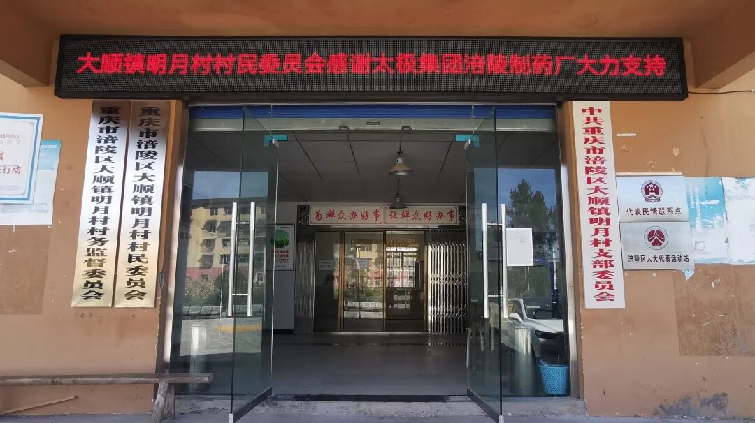 为进一步改善明月村村民委员会办公条件,涪陵制药厂还捐赠了LED显示屏一块,自投入运行以来,不仅成为明月村村办公室的一道靓丽风景,也成为明月村村民委员会公开信息发布的重要窗口。