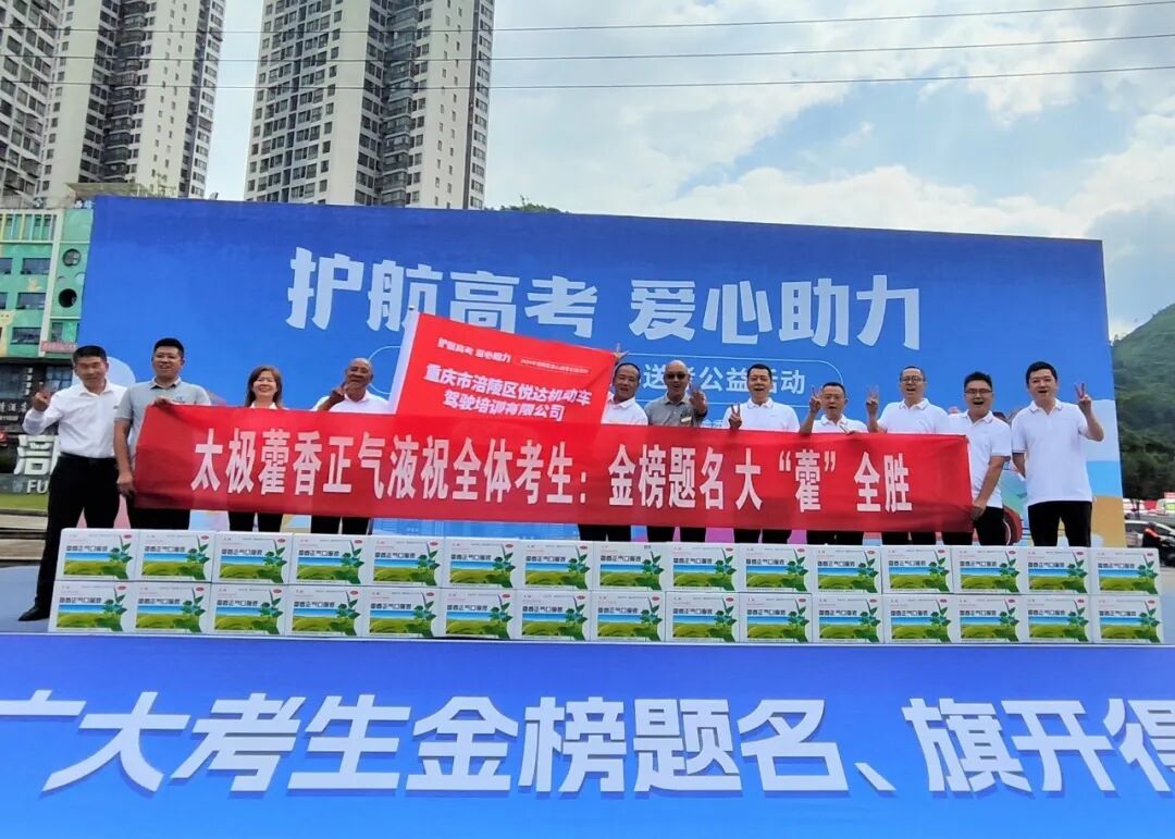 作为藿香正气口服液的生产厂家,涪陵制药厂积极参与涪陵区爱心送考公益活动,为参与送考的500多辆爱心车司机、护考的60多名山城雪豹突击队、蓝天救援队青年志愿者赞助藿香正气口服液2000盒、藿香小可乐2000瓶,竭尽全力为高考保驾护航。