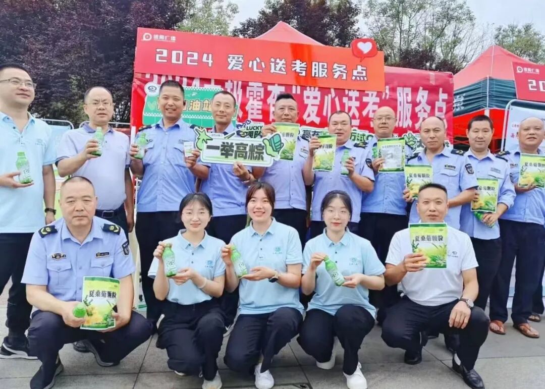 德阳太极大药房持续参与德阳市爱心送考活动,青年职工们为高考公益车队及交警送上了包括藿香正气口服液、藿香小可乐、夏桑菊颗粒组成的清凉礼包110份,为送考队伍助力。