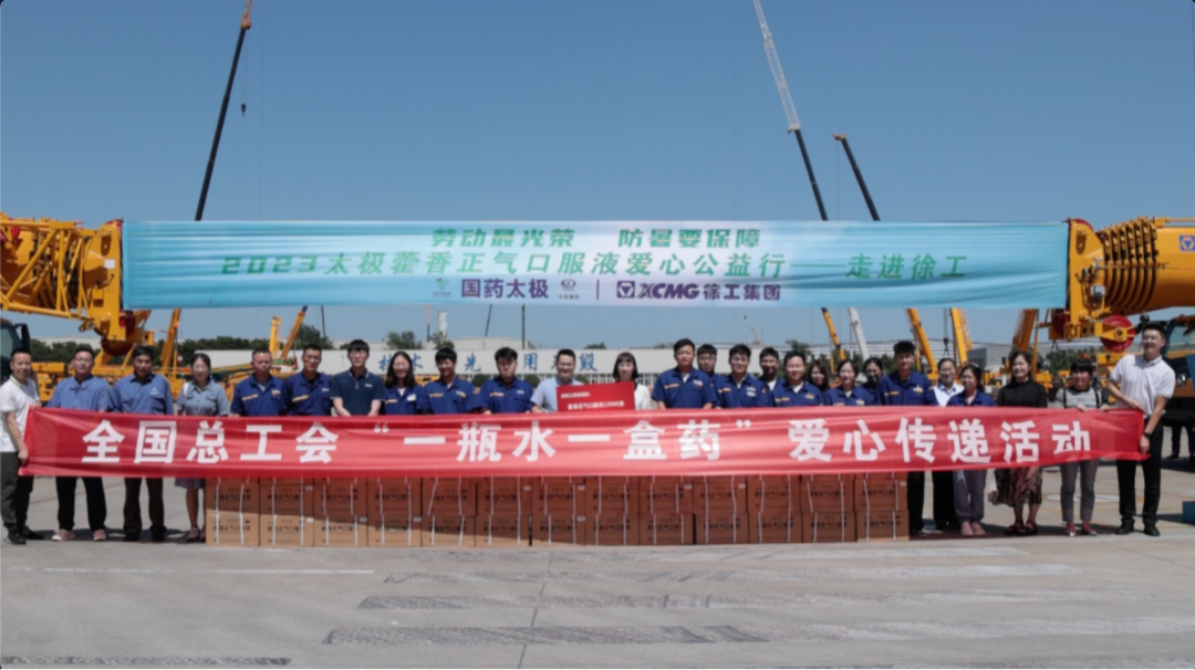7月5日,国药太极联合全国总工会走进徐工集团,为高温劳动者送去藿香正气口服液等清凉物资,为他们身体健康保驾护航。