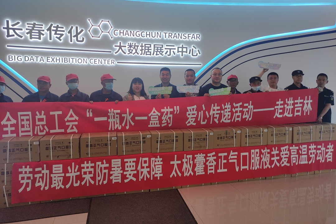 此外,国药太极志愿者顶着热浪,将一盒盒藿香正气口服液送达广东农垦集团工会、中建五局、通辽市第一运输、长春传化公路港物流、全总井冈山培训基地等单位,用实际行动为劳动者们撑起一把把“遮阳伞”。
