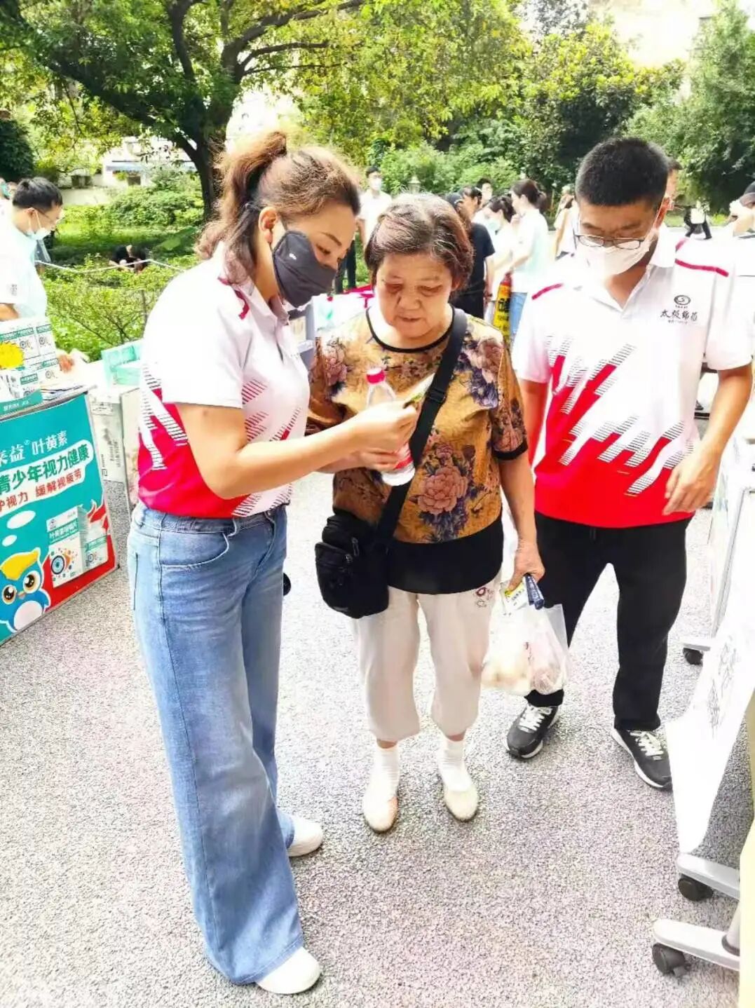 绵阳制药厂志愿者顶着炎热开展社区送健康活动,关爱老人、产品知识宣传。