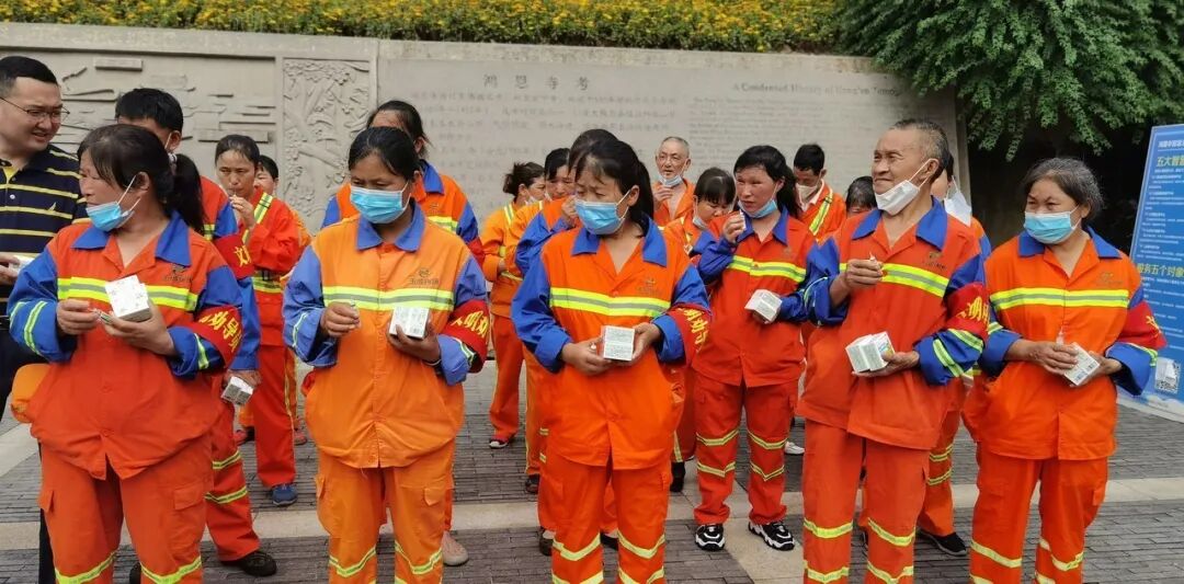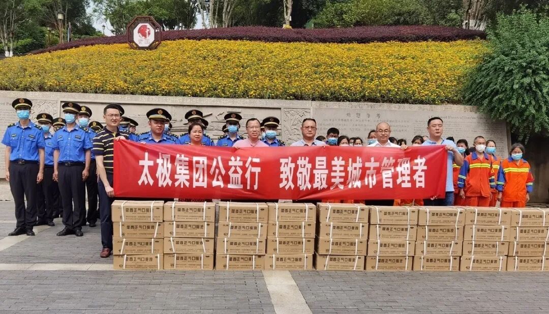 太极集团关爱一线工作人员,每年都会开展公益慰问,为奋战在高温一线的环卫工、交警、快递员等免费赠送藿香正气液等消暑物资。太极集团始终秉持“敬天爱人,生命至上”的理念,为社会贡献更多太极关爱。